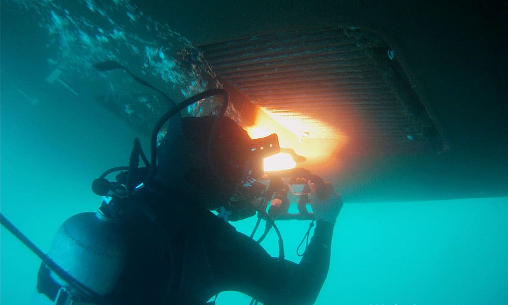 Realizamos ensayos no destructivos, medición de espesores y medición de potenciales, pulitura de propela con sistemas hidráulicos, soldadura subacuática, wáter blasting, entre otros.
